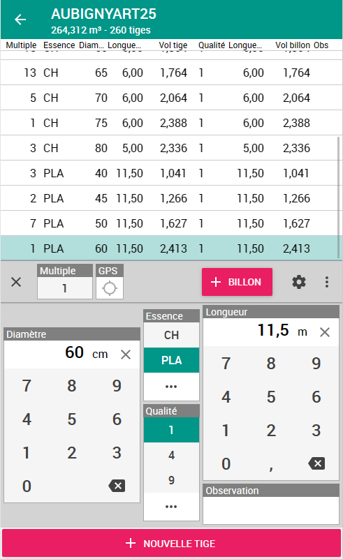 - Calcul de volume selon la norme de cubage des bois ronds