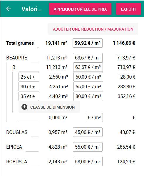 - Liste paramétrable par l'utilisateur des essences et des qualités